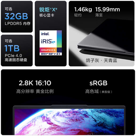 详细参数 品牌:联想(Lenovo) 系列:小新Pro14 型号:小新Pro14 产品定位:旗舰商务,创意设计,超轻薄本,轻薄便携,性价比机,游戏高端,学生用机,影音娱乐,家庭办公 上市时间:2023年01月 操作系统:Windows 11 核心数:十二核心 CPU型号:i5 CPU类型:Intel i5 CPU平台:Intel 内存类型:LPDDR5 最大支持内存:16GB 插槽数量:无 内存容量:16GB 硬盘容量:2TB 硬盘类型:固态硬盘 显卡类型:集成显卡 显存容量:共享系统内存 显卡型号:其他 光驱类型:无光驱 屏幕尺寸:14英寸 屏幕比例:16:10 屏幕分辨率:2880×1800 屏幕类型:IPS 触摸功能:不支持 色域:100% sRGB 蓝牙功能:支持 局域网:无 无线局域网:WiFi6 USB2.0端口:无 USB3.0端口:无 音频端口:耳机/麦克风二合一接口 视频端口:HDMI 读卡器类型:Micro SD RJ45网络接口:0个 Thunderbolt雷电3:0个 TypeC 3.1:0个 USB3.1端口:无 USB3.2端口:2个 雷电4接口:1个 内置摄像头:支持 内置扬声器:支持 内置麦克风:支持 指取设备:触摸板 电池类型:内置锂电池 电源适配器:有 续航时间:以官网信息为准 机身尺寸:312*221*15.99毫米 颜色:银灰 净重:1.46千克 厚度:15.99毫米 随机附件:适配器 厂商保修政策:全国联保 CCC认证编号:2022010902518024 生产者(制造商)名称:联想(北京)有限公司