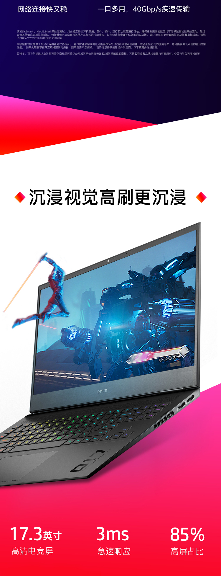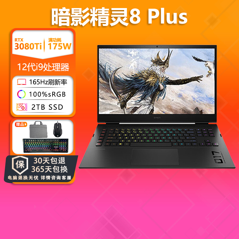 惠普HP暗影精灵8Plus[17-ck1008TX]17.3英寸电竞游戏笔记本学生设计电脑i9-12900HX/3080Ti/165Hz 100%sRGB/32G/2TSSD