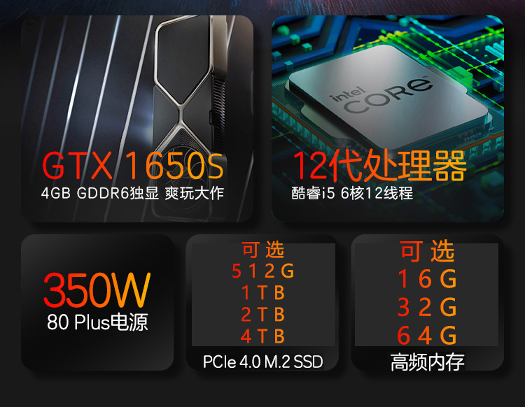 详细参数 品牌:惠普(hp) 产品定位:轻薄便携,游戏高端,商用电脑,影音娱乐,学生用机,性价比机,创意设计,家庭办公 系列:暗影精灵8 型号:TG02-011acn 能效标识:一级 上市时间(月):2022-03 操作系统:Windows 11 游戏性能:发烧级 核心数:六核心 CPU型号:i5-12400F CPU平台:Intel 内存容量:32GB 内存类型:DDR4 插槽数量:2个 最大支持内存:32GB 硬盘容量:1TB+1TB 硬盘类型:固态硬盘与机械硬盘 显卡类型:独立显卡 显存容量:4GB 显卡型号:GTX1650 光驱类型:无光驱 局域网:10/100/1000Mbps 无线局域网:WiFi6 USB2.0端口:4个 USB3.0端口:4个 音频端口:耳机/麦克风二合一接口 视频端口:HDMI 麦克风接口:1个 读卡器类型:无 颜色:黑色 净重:7.69千克 机身尺寸:155x297.35x337毫米 机身容量:10-20L 厂商保修政策:全国联保 CCC认证编号:2021010902389007 生产者(制造商)名称:HP Inc.