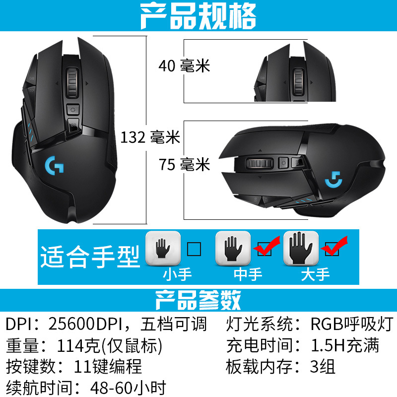 游戏鼠标*1、无线接收器*1、延展适配器*1、充电/数据线*1、附件盒*1、配重块、用户手册*1